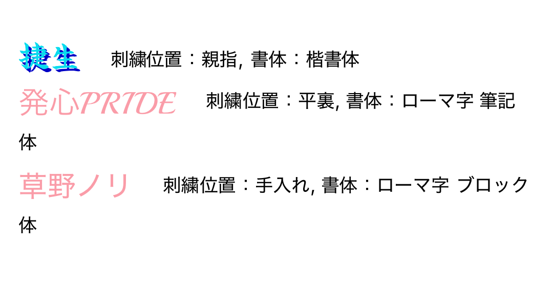親指:影ありor縁あり刺繍 ¥1,500